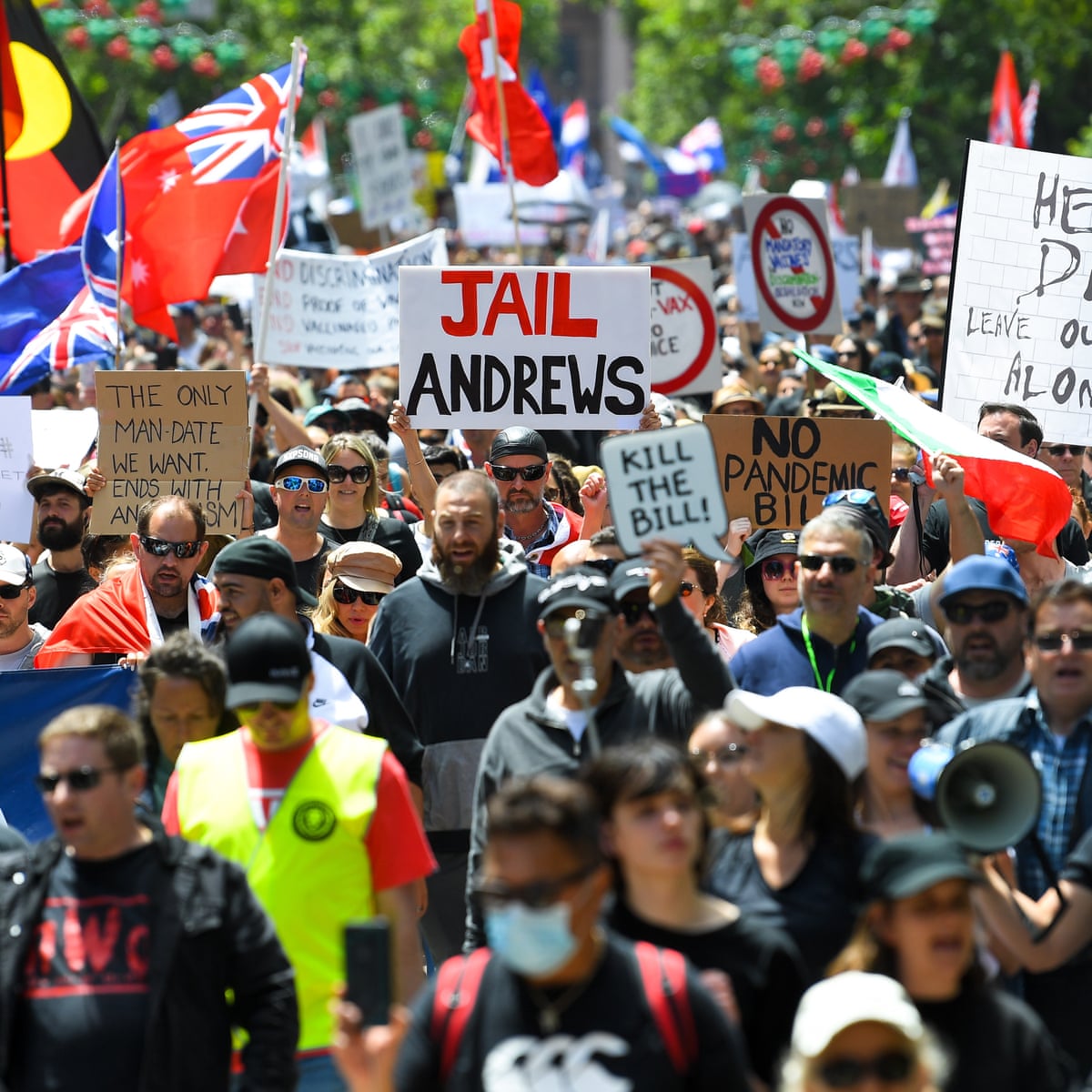 Thousands of people have gathered in Melbournes CBD for another protest against the state governments pandemic bill. Anti-lockdown protests have occurred almost every week in Melbourne for the past few months but tensions have escalated over Premier Daniel Andrews pandemic legislation. Melbourne avoids fourth day of protest mayhem from tradies anti-vaxxers and so-called freedom defenders Victoria Police arrested 92 people who gathered for protests in Melbourne but the. Protest which included signs advocating violence against politicians came.
